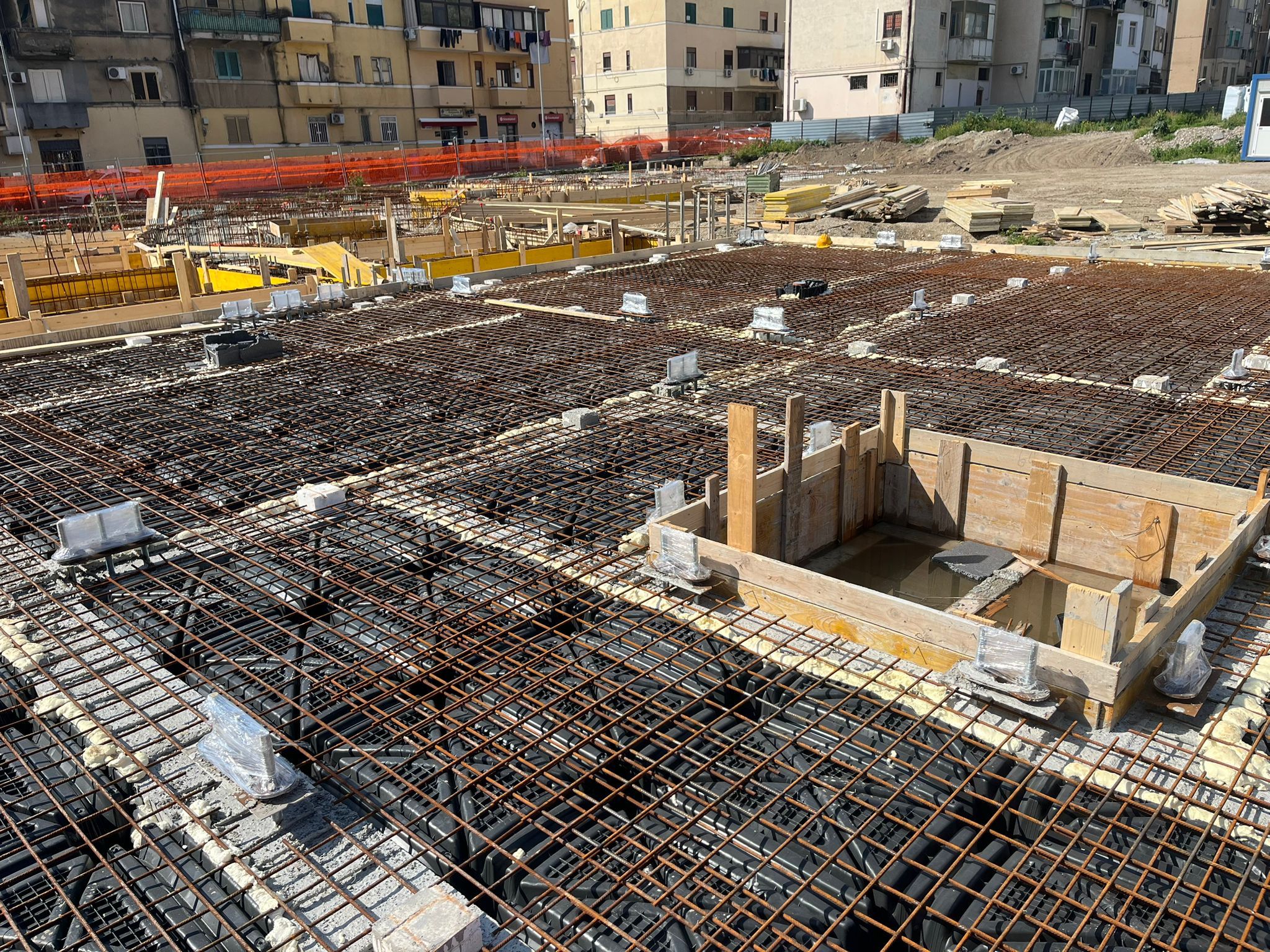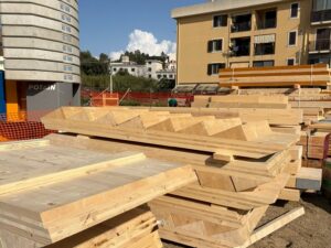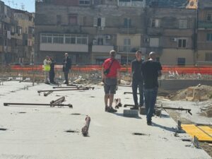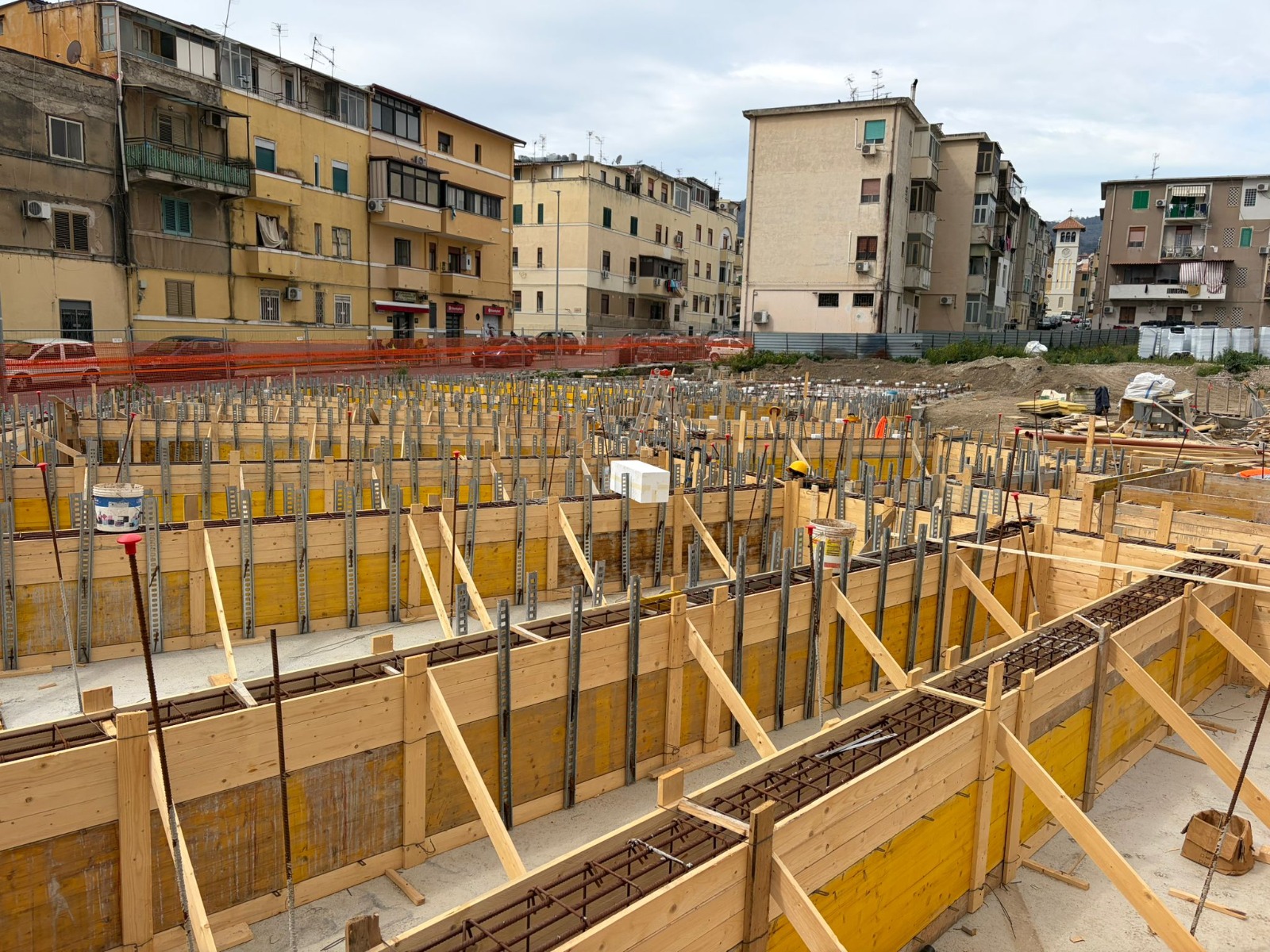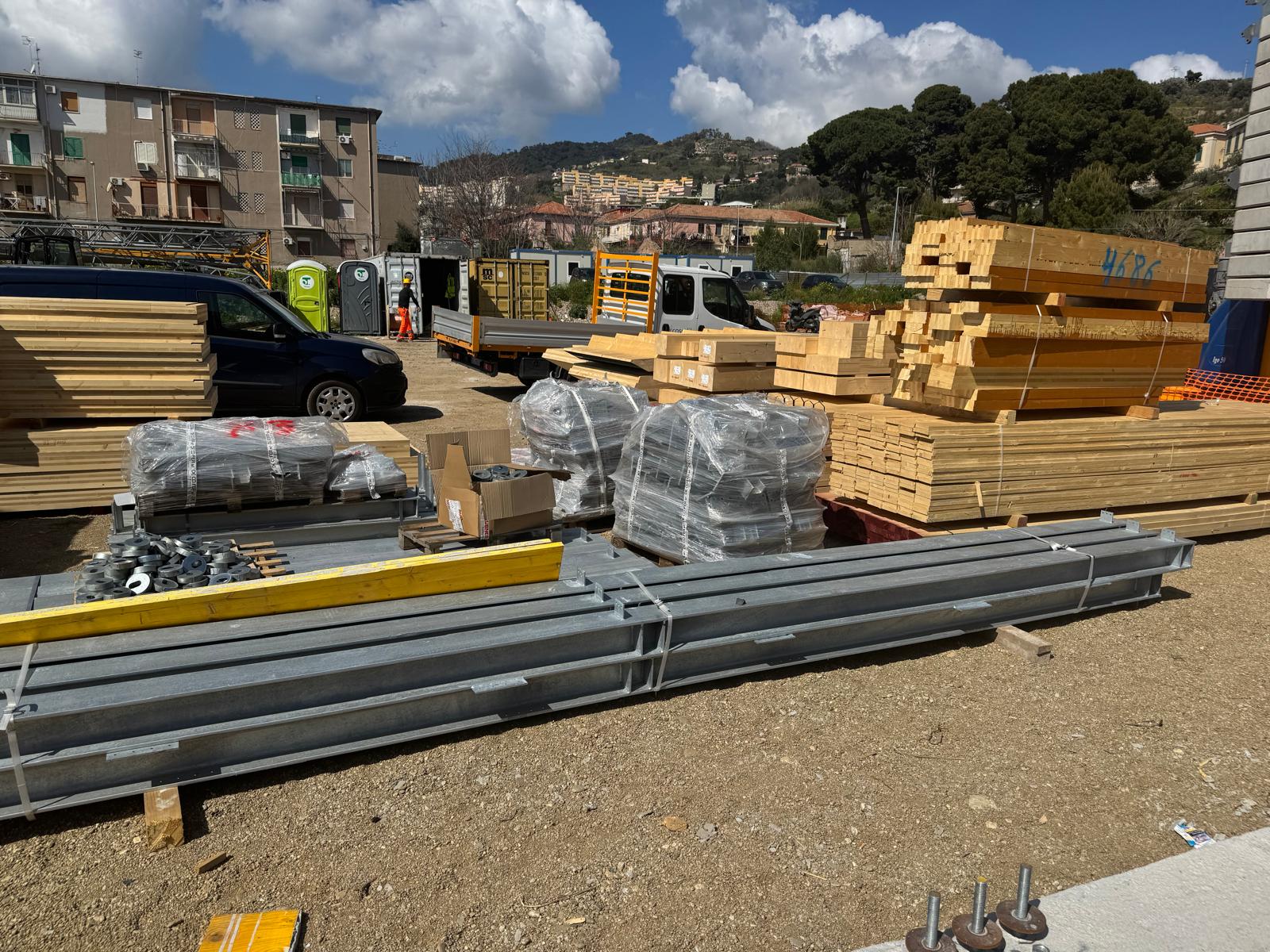 Procedono a buon ritmo i lavori di costruzione di 60 alloggi green a Fondo Basile. Nei giorni scorsi sono arrivati i pannelli X-LAM, le strutture in legno massiccio a strati incrociati che costituiranno l’ossatura degli edifici. Entro il 20 marzo inizierà la fase di posa e montaggio dei pannelli che porterà in poche settimane alla definizione della sagoma del complesso edilizio. Sono state ultimate le fondazioni in cemento armato di uno dei tre corpi dei quali è composto l’edificio e si stanno completando quelle negli altri due. Con l’assemblaggio dei pannelli inizierà la fase più visibile del cantiere, quella in cui le strutture inizieranno a elevarsi e a definire progressivamente i volumi architettonici. L’uso della tecnologia X-LAM, sempre più diffusa nell’edilizia contemporanea, consente un’elevata precisione costruttiva, il miglioramento delle prestazioni energetiche dell’edificio, elevati standard di sicurezza antisismica e la riduzione dell’impatto ambientale del processo costruttivo. Il 10 e l’11 marzo si sono tenuti i sopralluoghi del rup di Invitalia, architetto Massimo Baragli e dell’ingegnere Carmelo Ridolfo della Struttura Commissariale con i rappresentanti delle imprese impegnate nei lavori. Il progetto prevede la realizzazione di un edificio articolato in tre corpi strutturalmente indipendenti, ognuno dei quali di 4 piani fuori terra per un totale di 60 unità abitative con diverse superfici (circa 45 m², 75 m² e 95 m²) destinati alle famiglie provenienti dagli ambiti di risanamento. Gli alloggi sono dotati di logge, spazi esterni privati e posto auto coperto e si affacciano su un sistema di spazi comuni e aree verdi interne, configurate come una corte a servizio dei residenti.